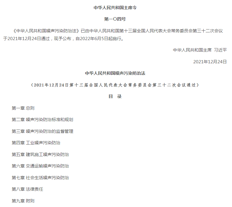 2021版《中华人民共和国噪音污染防治法》